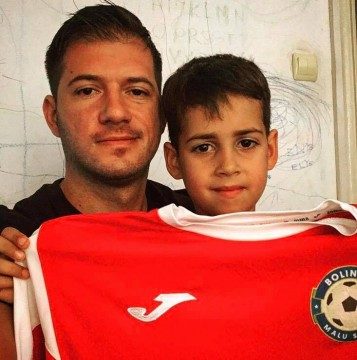 Ținerii jucători își împart echipamentele cu cei mici ! La fiecare meci invitația către cetăteni este făcuta de un prichindel îmbrăcat în echipamentul tatălui său .